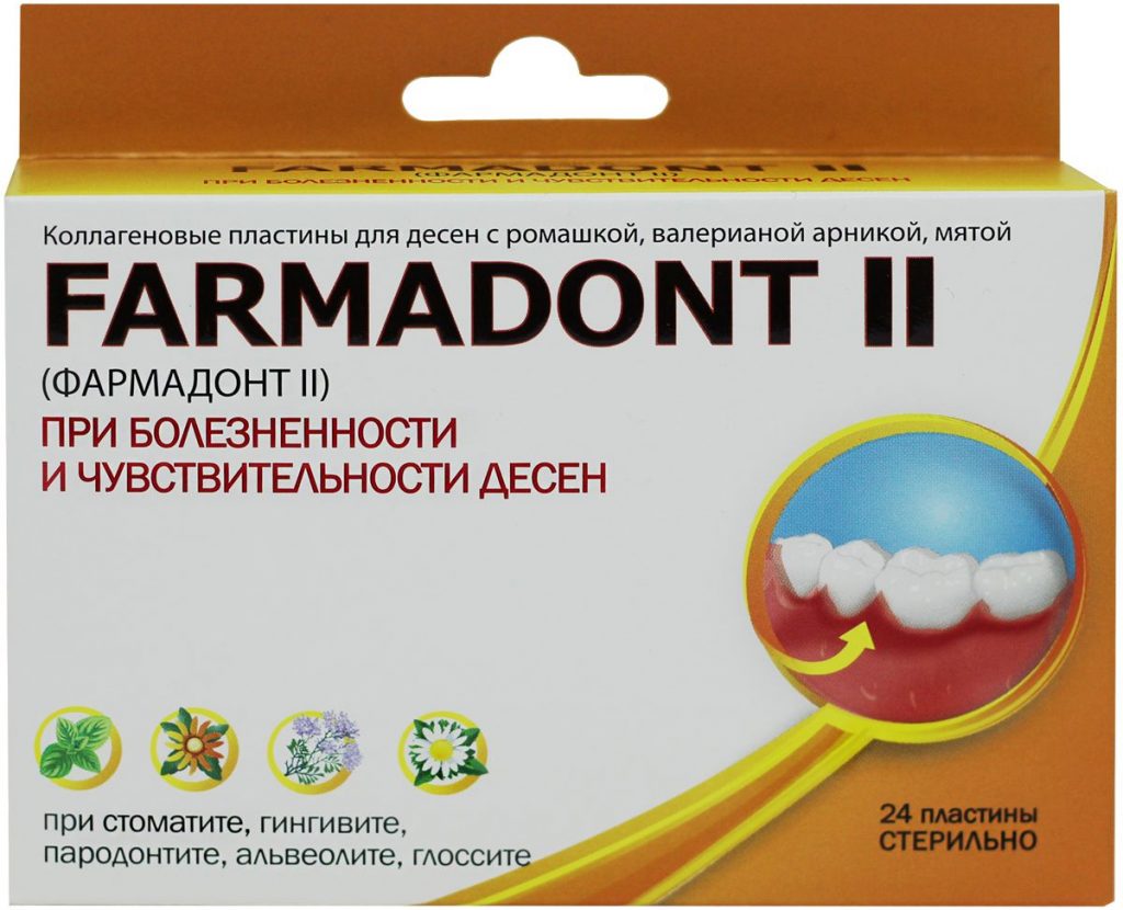 Фармадонт II пластины коллаген при болезн.и чувств. десен №24 (ромашка-валериана-арника-мята) {Зеленая Дубрава}